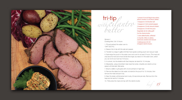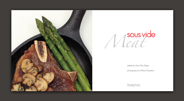 "Sous Vide Meat" is one in a series of cookbooks we produced to introduce the sous vide technique to home cooks. The content is focused on how to prepare meat.